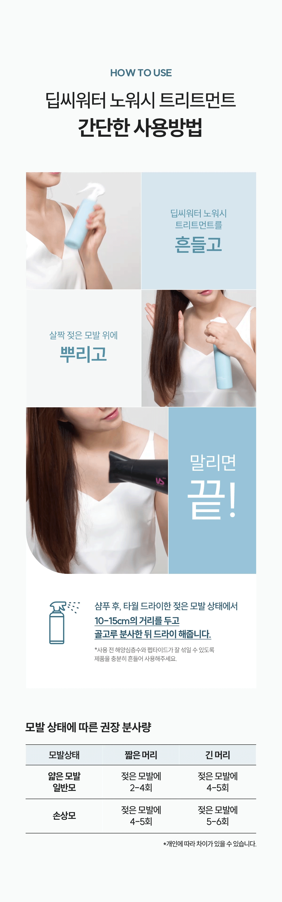 노워시 트리트먼트는 별도의 헹굼 없이 간편하게 사용할 수 있도록 제작되어,